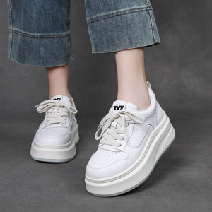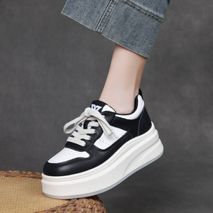 吉树2025秋真皮系带厚底休闲女鞋熊猫鞋头层牛皮高跟小个子单鞋潮