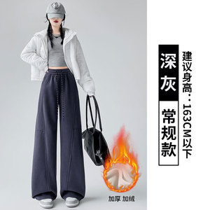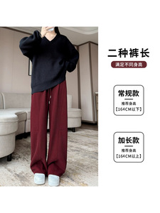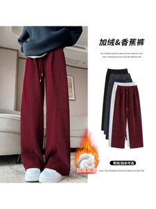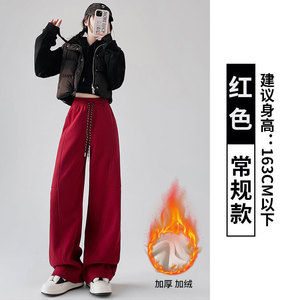 安可拉红阔腿裤女秋冬2025新款高腰休闲加绒直筒卫裤小个子香蕉裤