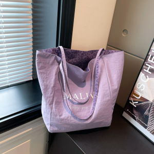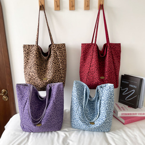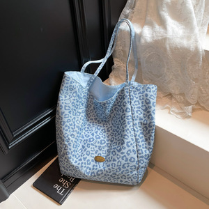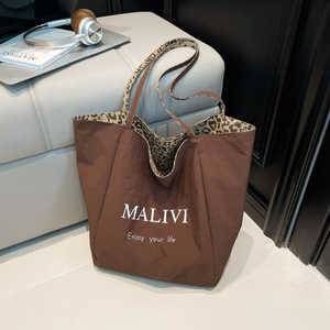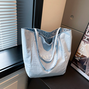 双面用新款2025潮流设计豹纹帆布休闲大容量女士通勤托特单肩包