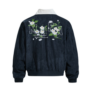 美式潮牌撞色花卉刺绣鹿皮绒夹克男女秋冬宽松休闲潮流情侣外套