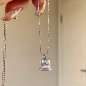 少女心S925银拉丝小铃铛项链女小众精致星芒造型清冷感吊坠项链