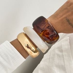 欧美跨境饰品 复古风晕染亚克力不规则宽手镯 小众时尚感圆形手饰