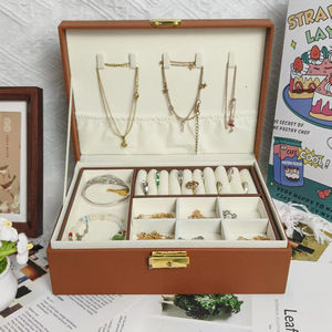 创意双层带锁便携收纳盒通勤首饰包存放耳钉戒指大容量饰品防刮盒