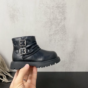 小童休闲百搭款经典金属双搭扣装饰纯色款小短靴2025年秋冬款棉靴
