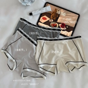 MUZITATA秋冬新款莫代尔系列内裤女奶油色小碎花蕾丝纯棉档三角裤