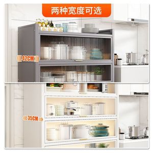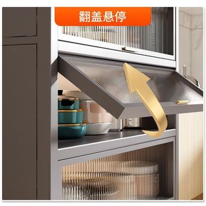 家用翻盖厨房置物架落地多层收纳柜子多功能碗餐边柜橱柜储物柜