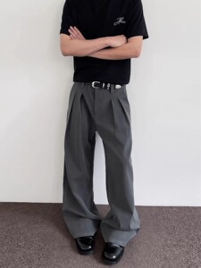美垂坠感弯刀工字褶A字西裤男2025秋季宽松双褶设计感休闲拖地裤