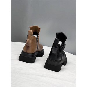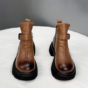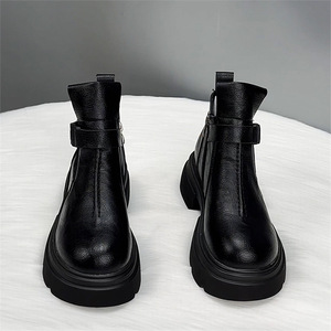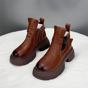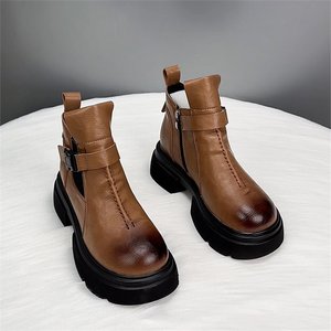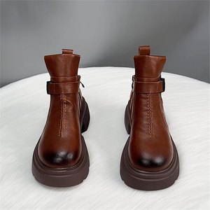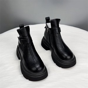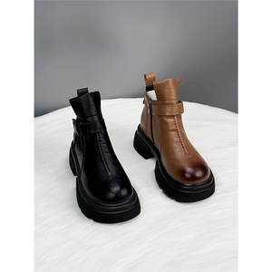 真皮欧洲站厚底马丁靴女款2025新款春秋季英伦风小个子切尔西短靴
