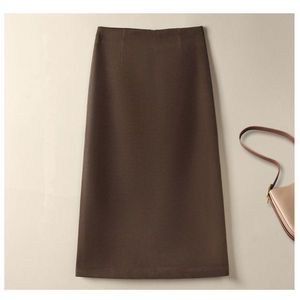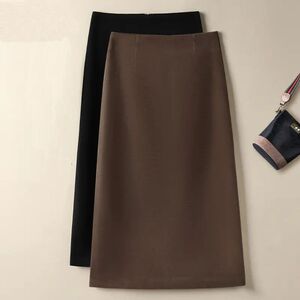 A字毛呢半身裙女秋冬2025新款气质高腰开叉中长款一步包臀直筒裙