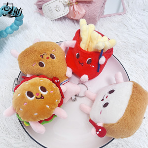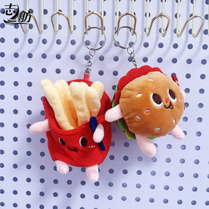 可爱薯条汉堡食物挂件玩偶情侣毛绒钥匙扣热狗鸡腿小学生公仔卡通