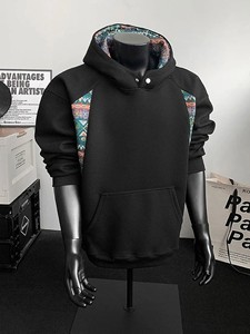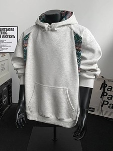 新中式民族风高领连帽卫衣男士秋季美式拼接长袖上衣情侣帽衫外套
