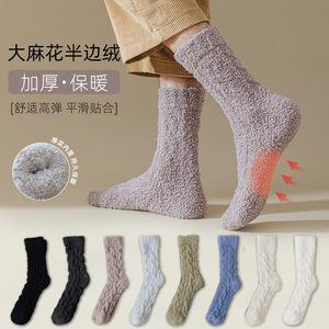【加厚保暖-珊瑚绒】冬季袜子男士不掉毛大麻花半边绒中筒袜运动