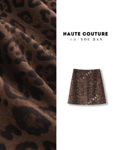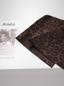秋季时髦感豹纹中长款半身裙质感麂皮绒小众百搭显瘦保暖开叉