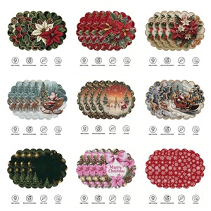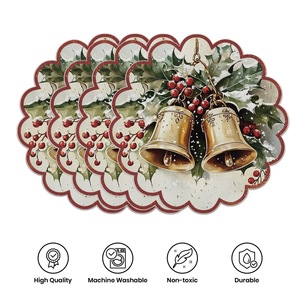 跨境热销圣诞节38cm冬青圆形波浪边圣诞老人树雪花餐垫西餐桌装饰