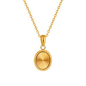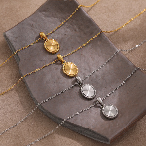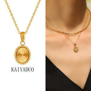 欧美跨境ins镭射椭圆吊坠项链不锈钢饰品配饰镀PVD金色首饰
