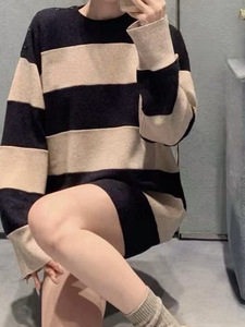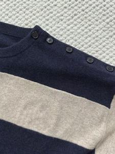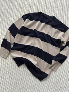 南油高定!yb开发25早秋新款羊毛肩扣条纹圆领长袖男女同款