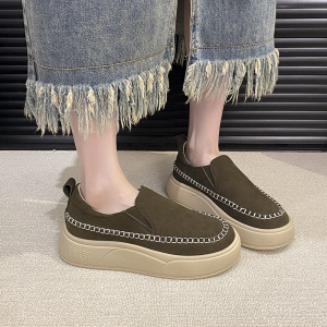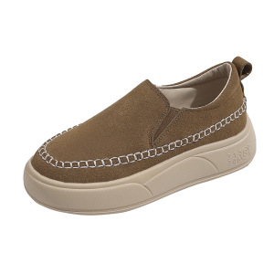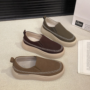 2025秋真皮松糕鞋女新款时尚单鞋一脚蹬乐福鞋简约百搭厚底懒人鞋