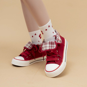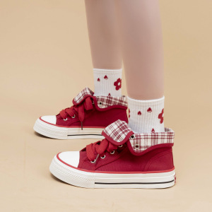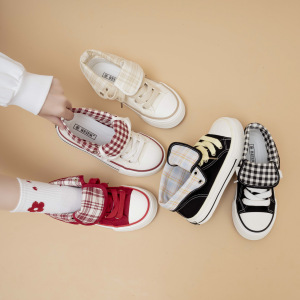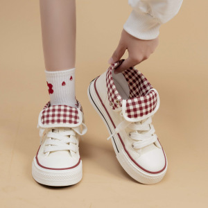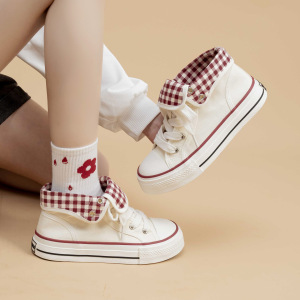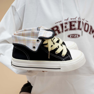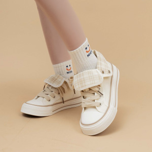 蓓尔秋季高帮帆布鞋女2025新款复古休闲百搭小众时尚休闲板鞋6926