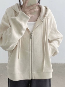 插肩袖卫衣女短款外套秋季新款拉链连帽衫小个子宽松显瘦开衫