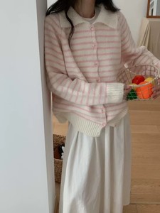 韩系复古条纹翻领针织开衫女2025秋冬新款宽松休闲慵懒风毛衣外套