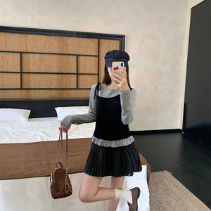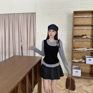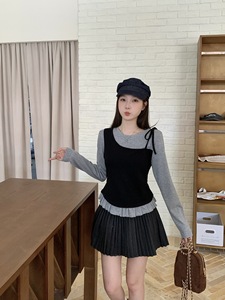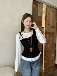 大码设计感不规则假两件长袖T恤女2025秋季新款小众减龄上衣