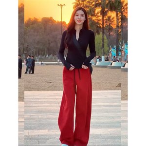 黑色上衣+红色裤子