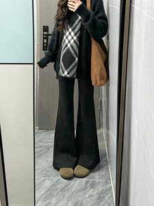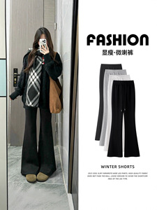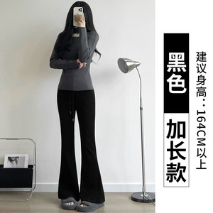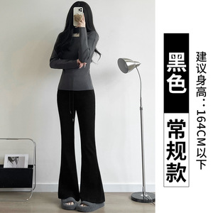 韩系黑色喇叭裤女秋季2025新款高腰显瘦小个子加绒卫裤微喇运动裤