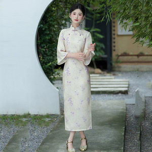 倒大袖国风长款改良秋季旗袍中袖2025新款年轻款少女复古修身春秋