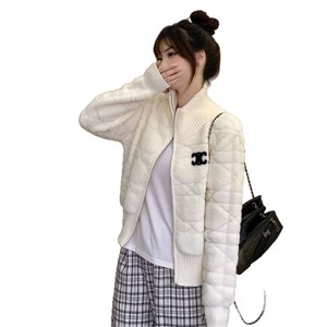 春秋款刺绣香风菱格设计修身显瘦外穿针织秋冬拉链开衫毛衣外套