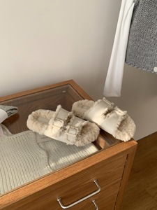 2855~厚底法式毛毛鞋女鞋子外穿2025年新款秋冬季加绒棉拖鞋
