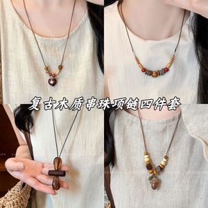 复古木质串珠吊坠项链女小众设计感民族风配饰时尚长款百搭毛衣链