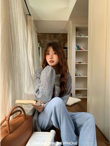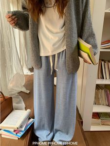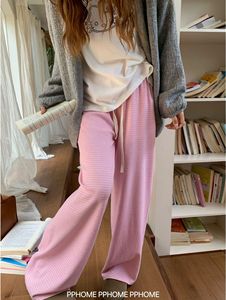 软糯针织条纹裤显瘦直筒垂感慵懒休闲阔腿裤高腰垂感显瘦黑色裤子