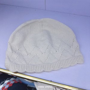 批发韩国2025年早秋新款镂空针织花纹毛线帽纯色百搭显脸小包头帽