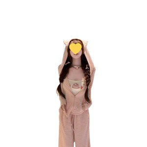 秋季网红风粉色条纹连帽上衣背心阔腿长裤甜辣三件套女