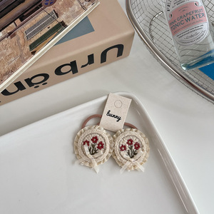 韩系新款刺绣花朵蝴蝶结bb夹发圈甜美蕾丝花边儿童发饰前额碎发夹