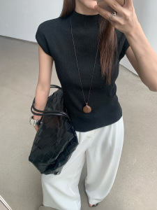 FONE简禾极简风纯色短袖针织衫女2025秋季设计感立领打底衫58296