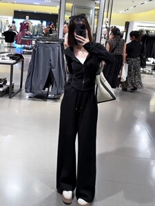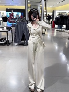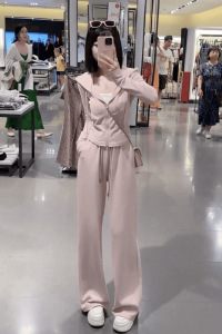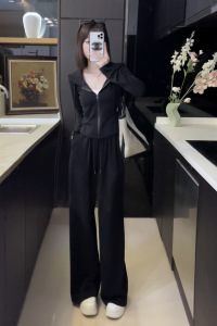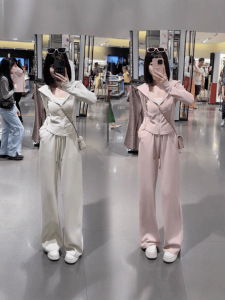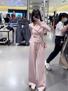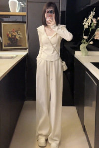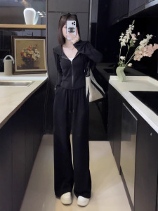 2025秋季新款女高级感长袖连帽卫衣外套高腰阔腿裤大码运动两件套