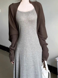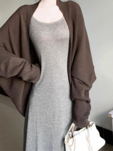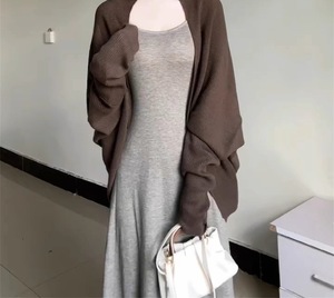 韩系慵懒高级感穿搭针织外搭开衫女秋季松弛感蝙蝠袖披肩毛衣外套