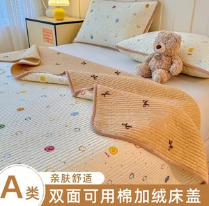 纯棉床盖牛奶绒榻榻米被套三件套四季款加厚全棉四件套防滑床单款