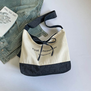 韩版帆布包包女大容量2025新款休闲单肩托特包双面斜挎通勤包女