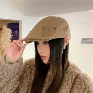 韩版秋冬季帽子女时尚高级感百搭前进帽新款复古英伦风鸭舌帽批发