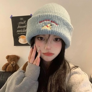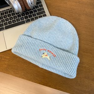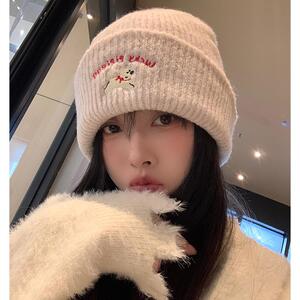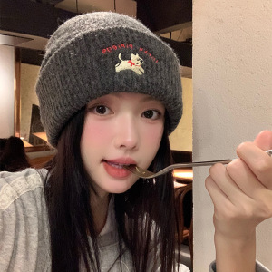 韩系可爱小狗针织毛线帽女加厚保暖秋冬新款显脸小包头帽冷帽冬季