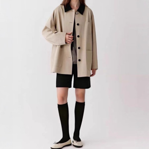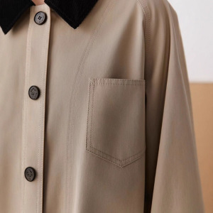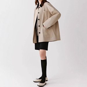 禾同款女装2025秋季斜纹棉翻领气质单排扣夹克风衣1242C2105501