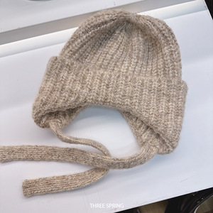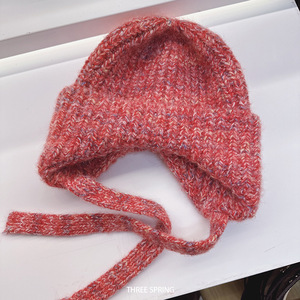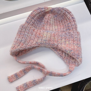 批发韩国2025年新款纯色翻边针织帽女护耳保暖大头围显脸小雷锋帽