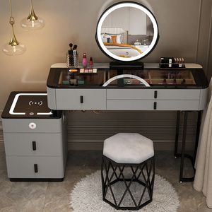 智能玻璃梳妆台无线充电音响北欧卧室现代简约多功能黑科技化妆桌