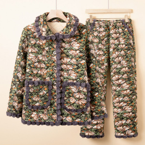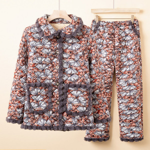 中老年妈妈冬装加绒加厚翻领棉衣新款奶奶装大码宽松短款碎花棉袄