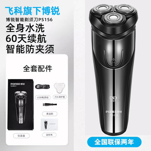 飞科旗下博锐PS160水洗Type-c充电+赠送收纳包+3刀头+鼻毛器+置物架 (智能升级款)