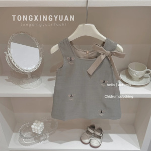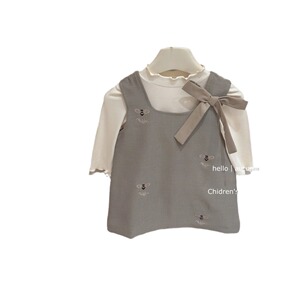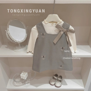 女小童早秋卷边打底衫蝴蝶结背心裙宝宝小香两件套装洋气百搭潮流