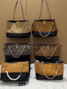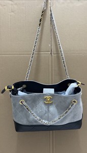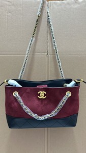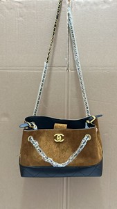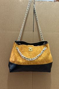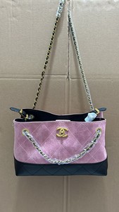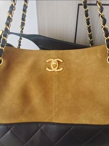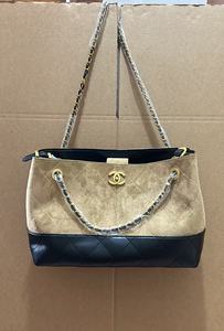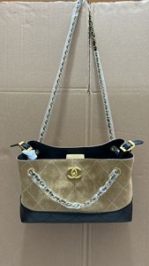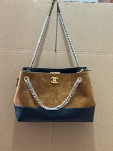小香25高级手工坊廘皮双拼单肩大容量手提复古通勤腋下托特链条包