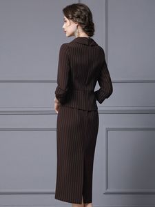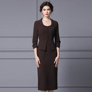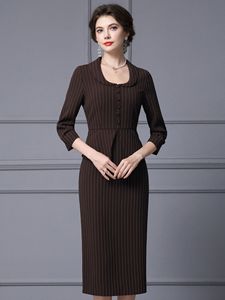 智丽巨好看的早秋连衣裙高级不撞款条纹掐腰过膝包臀裙子2025新款